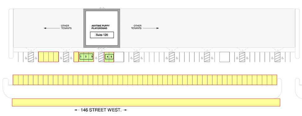If our member spots are full, you’re welcome to park in any stall behind the posted signs along 146th Street—these are our yellow zone spots, as shown in the diagram below.